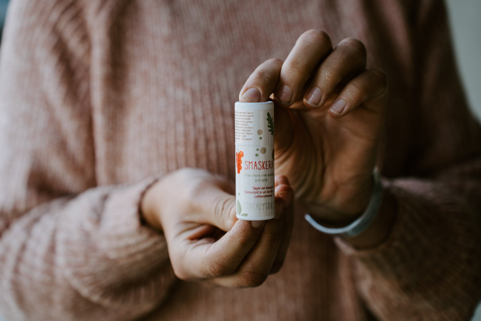 Packaging in carta riciclata e riciclabile, formato push-up, tascabile e 100% zero waste.